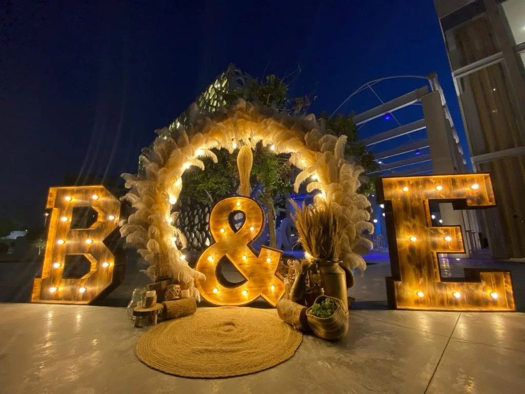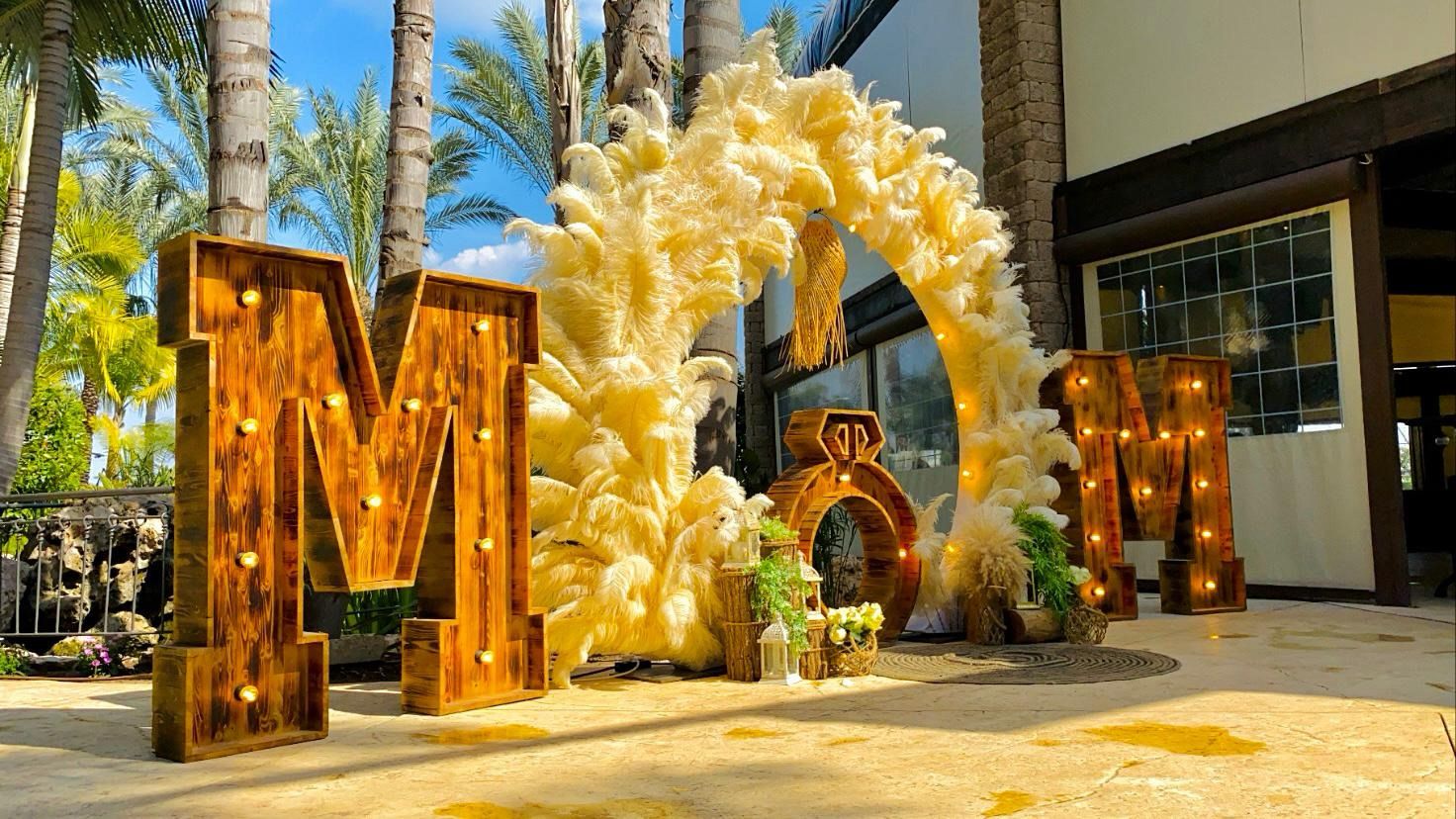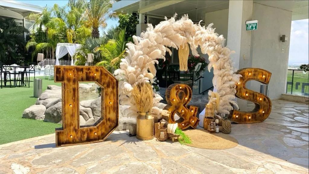 עמידות ונוכחות: אותיות גדולות ומרשימות שניתן להציב בכניסה לקבלת הפנים, לצד החופה או כתוספת עיצובית לרחבת הריקודים.